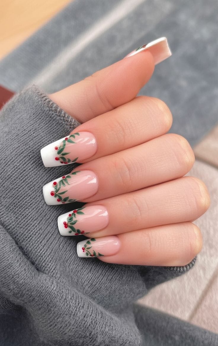 Renove a clássica francesinha trocando a ponta branca por um contorno pontilhado ou uma linha discreta — utilizando cores de Natal como vermelho, dourado ou verde. Um toque moderno e elegante para quem prefere sutileza.